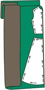 Если ткань узкая (70 – 90 см) или имеет сложный рисунок, требующий подгонки, ее расстилают во всю ширину и длину лицевой стороной вниз. В этом случае количество выкроек должно соответствовать числу деталей в изделии (два рукава, спинка и полочка в развернутом виде и т.д.).